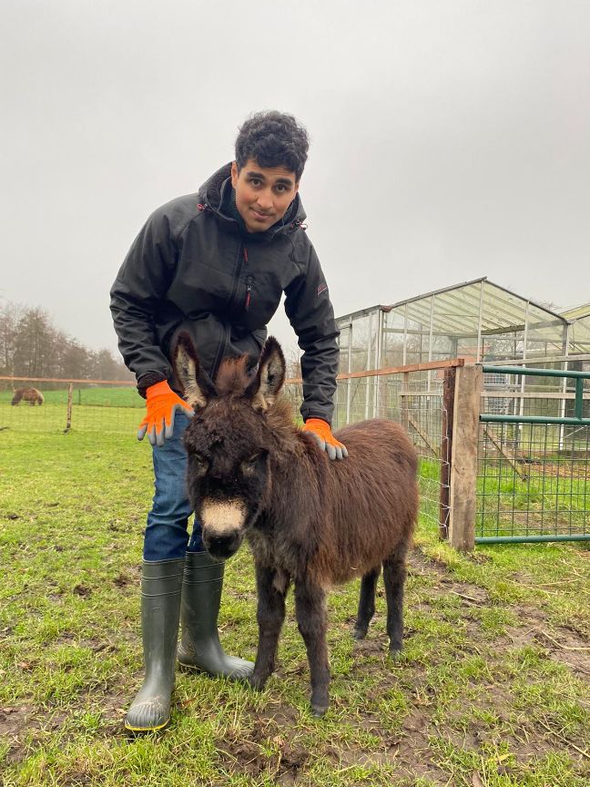 Mijn zoon (25) woont bij ons thuis. Overdag gaat hij naar een Zorgboerderij. Vanwege autisme en een verstandelijke beperking is de functie van ‘hulpboer’ zijn dagelijkse werk. Als geen ander weet hij dieren, die soms moeilijk zijn in de omgang, de goede kant op te krijgen. Hij heeft geen taalontwikkeling en doet dus alles met gebarentaal of aanrakingen en contact maken. Een bokkig, eigenwijs ezeltje wist hij binnen enkele dagen tam te krijgen en zonder enige krachtsinspanning uit de wei naar de schuur te bewegen. De boer moest hem vaak ‘vangen’ en naar de schuur sleuren. Hoe deed mijn zoon dat? Door allereerst de tijd te nemen, op zoek te gaan naar de contactpunten tussen hem en de ezel. Elkaar ontmoeten, zien, aanraken en aangeraakt worden. In dit geval bleek de schouder van het ezeltje, na enig tasten, de juiste plek. Met een hand op de schouder loopt hij nu stapje voor stapje aan het eind van de dag met het ezeltje naar de schuur voor onderdak.