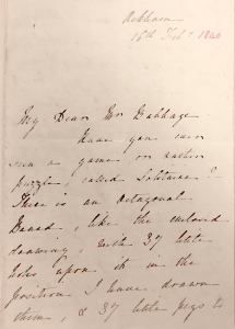 Babbages brief aan Ada van 9 september 1843, getiteld “Enchantress of Number” (Tovenares van de getallen)