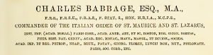Een voorbeeld van Babbages eretitels – zes regels, eindigend met ‘enz.’.