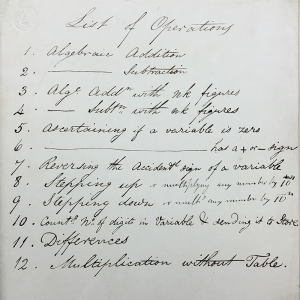 Een lijst met bewerkingen voor de Analytical Engine (from the Museum of the History of Science)