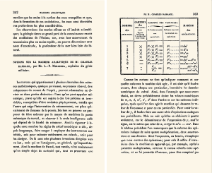Babbage had nooit een serieus verslag van de Difference Engine gepubliceerd en had helemaal niets gepubliceerd over de Analytical Engine. Maar hij sprak over de Analytical Engine in Turijn, en er werden aantekeningen gemaakt door een zekere Luigi Menabrea, die toen een 30-jarige legeringenieur was, maar die 27 jaar later premier van Italië werd (en ook bijdragen leverde aan de wiskunde van de sterkteberekeningen).