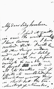 De volgende dag om 12 uur ’s middags schreef ze Babbage opnieuw, met de vraag of hij zou willen helpen bij ‘de laatste revisie’. Daarna voegde ze eraan toe: “U zult vanochtend mijn lange brief hebben ontvangen. Misschien wilt u niets meer met mij te maken hebben. Maar ik hoop op het beste…”