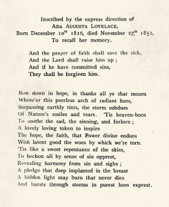De visitekaart van Ada Lovelace (Powerhouse Museum Sydney)