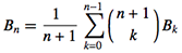 Door dit te herschikken en machten van x op elkaar af te stemmen, kreeg ze een reeks vergelijkingen voor de Bernoulli-getallen Bn, die ze vervolgens ‘ontrafelde’ om een recursieve relatie te verkrijgen in de vorm:
