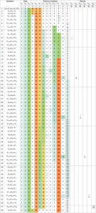 En dit is wat hetzelfde schema oplevert voor de volgende twee (niet-nul) Bernoulli-getallen. Zoals Ada ontdekte, zijn er uiteindelijk niet meer opslaglocaties (gespecificeerd door variabele kaarten) nodig om hogere Bernoulli-getallen te berekenen, alleen meer bewerkingen.