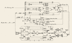 Het is een mooie manier om weer te geven hoe een systeem werkt. Het is in sommige opzichten vergelijkbaar met een modern timingdiagram, maar toch niet helemaal hetzelfde. In de loop van de jaren dat Babbage aan de Analytical Engine werkte, laten zijn aantekeningen steeds complexere diagrammen zien. Het is niet helemaal duidelijk wat zoiets betekent: