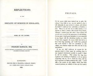 Charles Babbages “Reflections on the Decline of Science in England, and on Some of Its Causes”