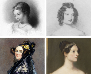 Ada Lovelace op verschillende leeftijden (ze haatte de afbeelding linksonder)